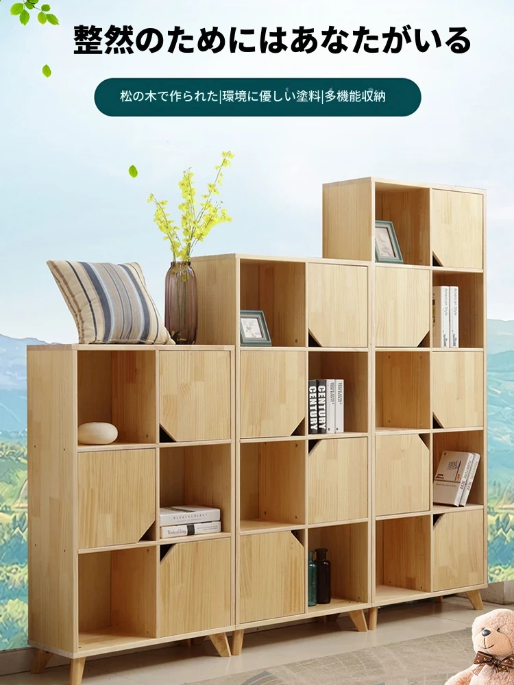 天然木製キッズブックシェルフ - 扉付き!シンプルで学生に最適な収納本棚。可愛いお子様のお部屋をすっきり整える、省スペースのアイデア収納。
