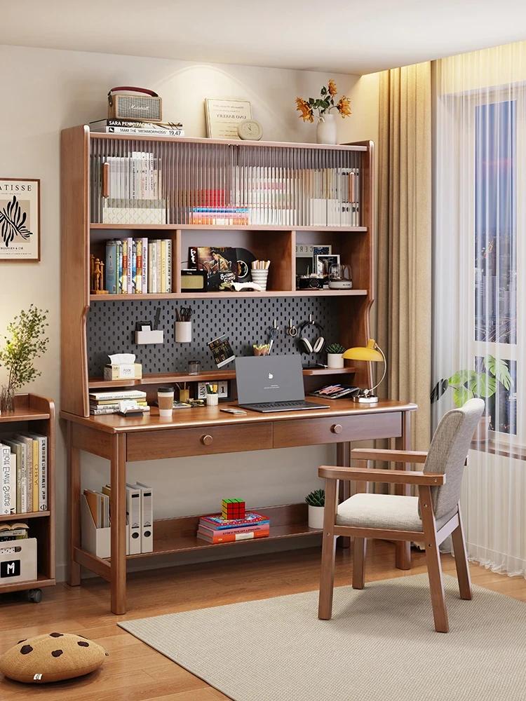 Nordic Solid Wood Desk and Bookshelf Combo - Expandable Study Table for Home Office, Versatile Writing and Computer Desk, Stylish Storage Solution