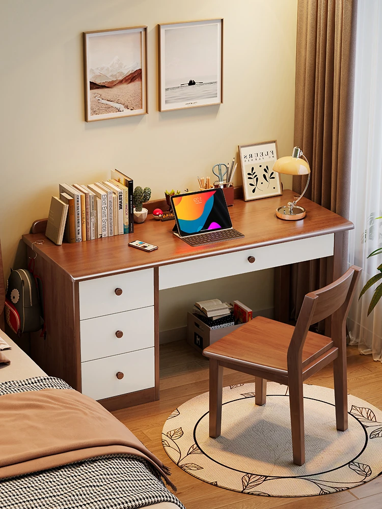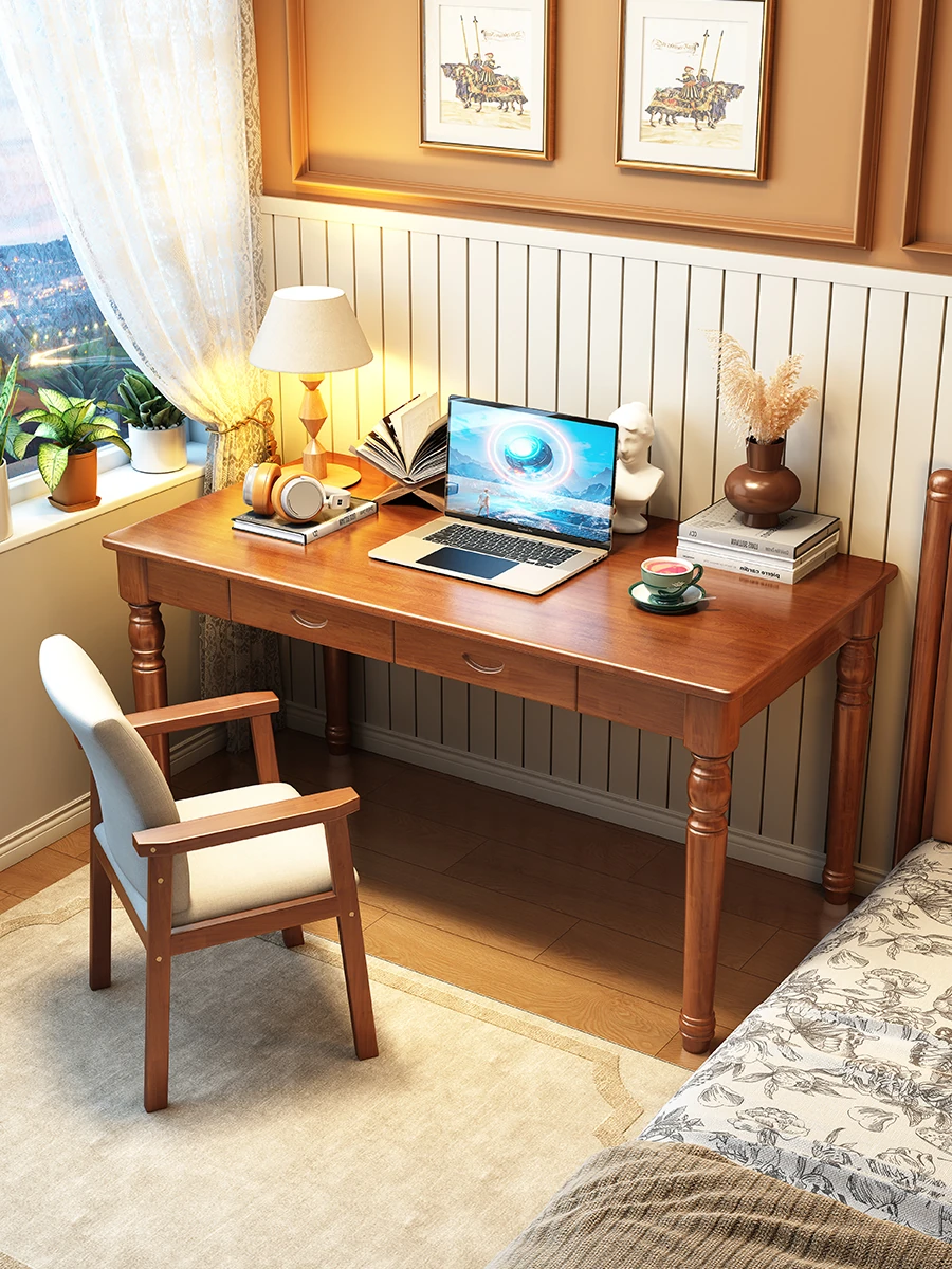 Vintage American Solid Wood Desk - Stylish Study Table for Students and Home Use, Perfect for Small Spaces and Bedrooms, Modern Minimalist Computer Writing Desk