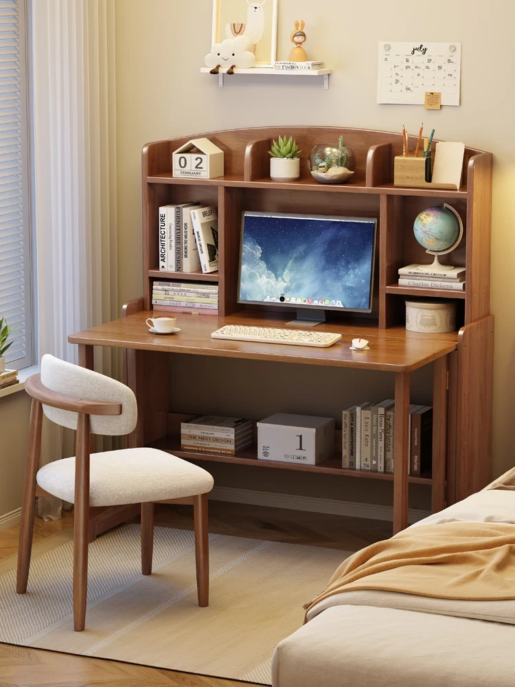 Compact Solid Wood Folding Desk & Bookshelf Combo for Small Spaces - Ideal for Bedrooms, Home Use, and Students - Stylish Writing Desk with Integrated Storage