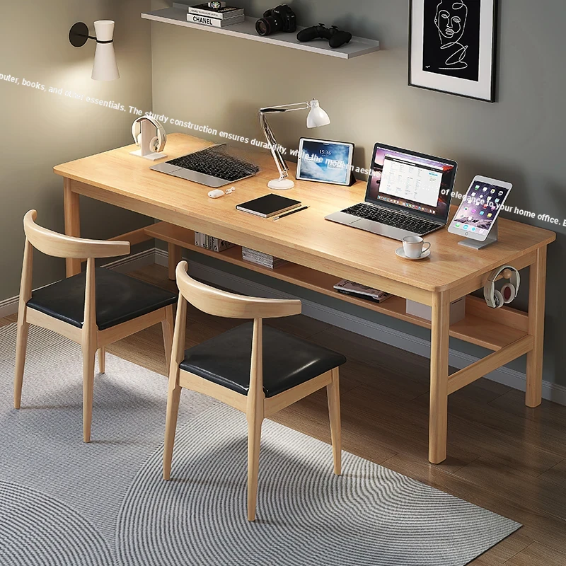 Solid Wood Double Large Writing Desk - Home Use Long Computer Table for Students and Office - Minimalist Design for Study and Work, Perfect for All Settings