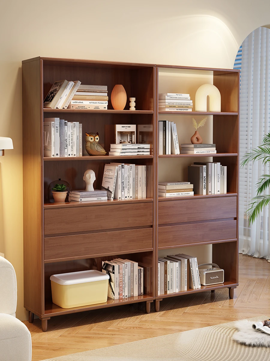 Modern Minimalist Solid Wood Bookshelf - Elegant Floor-standing Storage Unit for Living Room - Simple Bookcase and Organizing Rack Combo