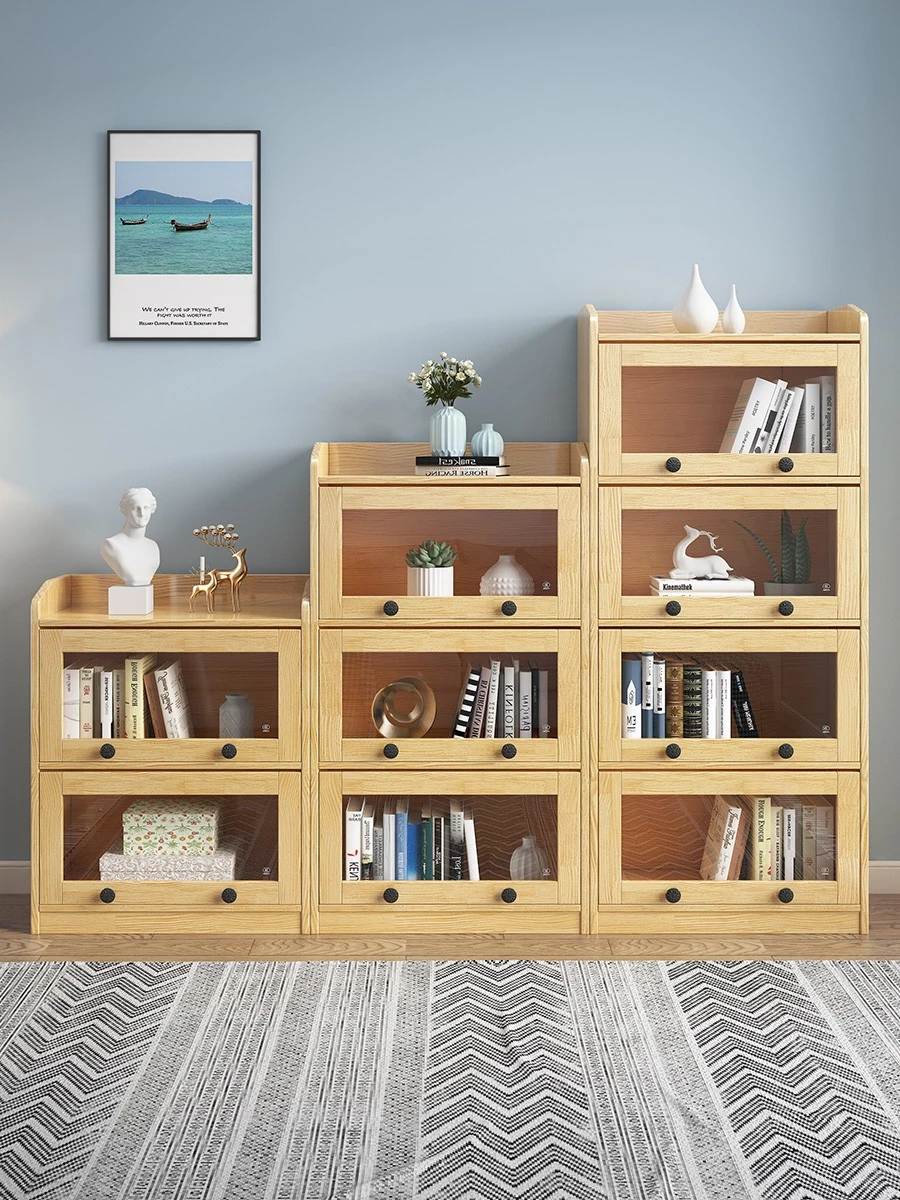 Modern Minimalist Solid Wood Bookcase with Glass Doors – Stylish Display Cabinet for Living Room, Easy Storage Solution for Kids, Perfect Bookshelf and Organizer.