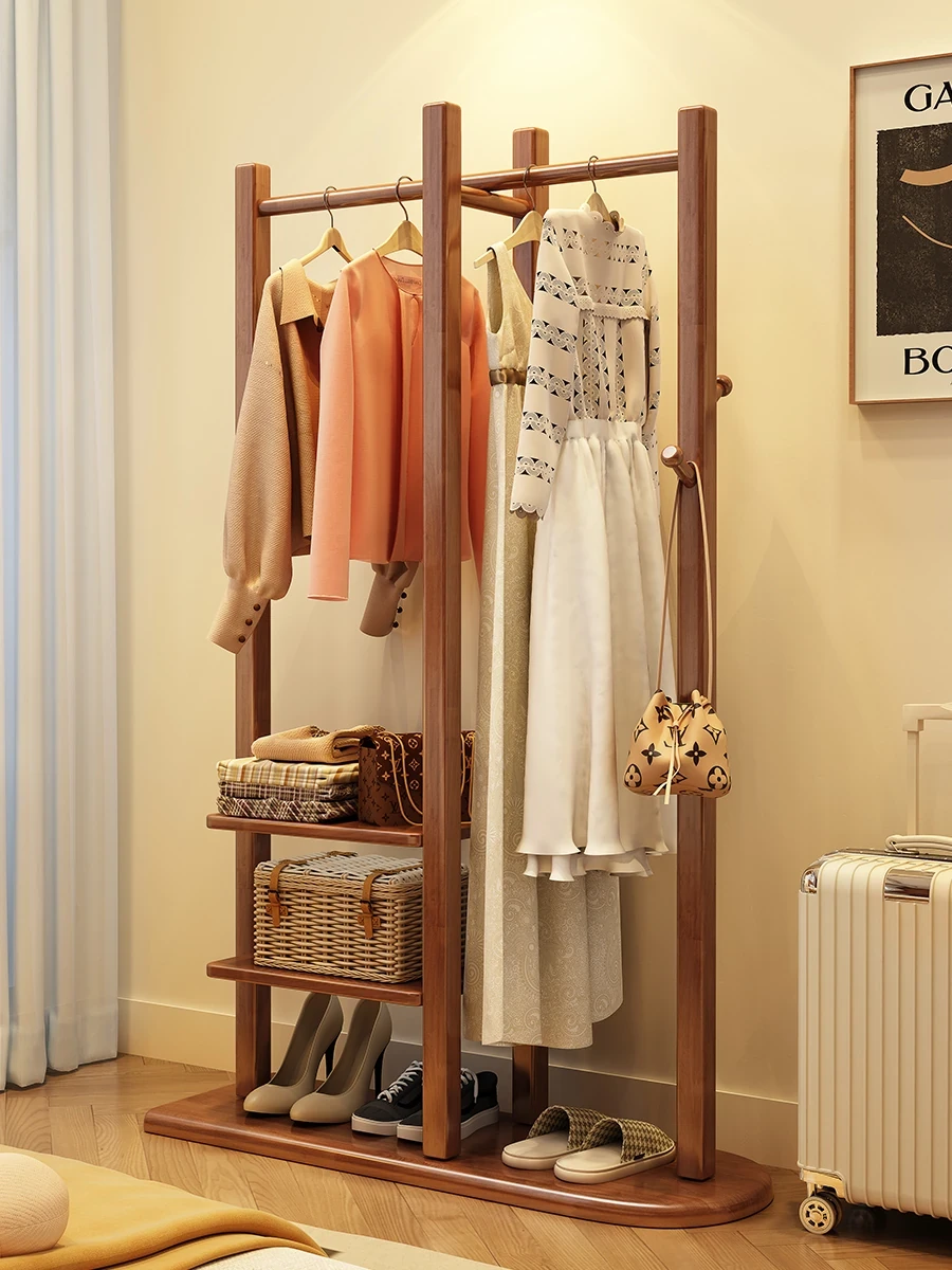 Sleek Solid Wood Coat Rack - Modern Multifunctional Stand for Living Room & Bedroom, Stylish Floor Storage Solution with Hanging and Shelving Options