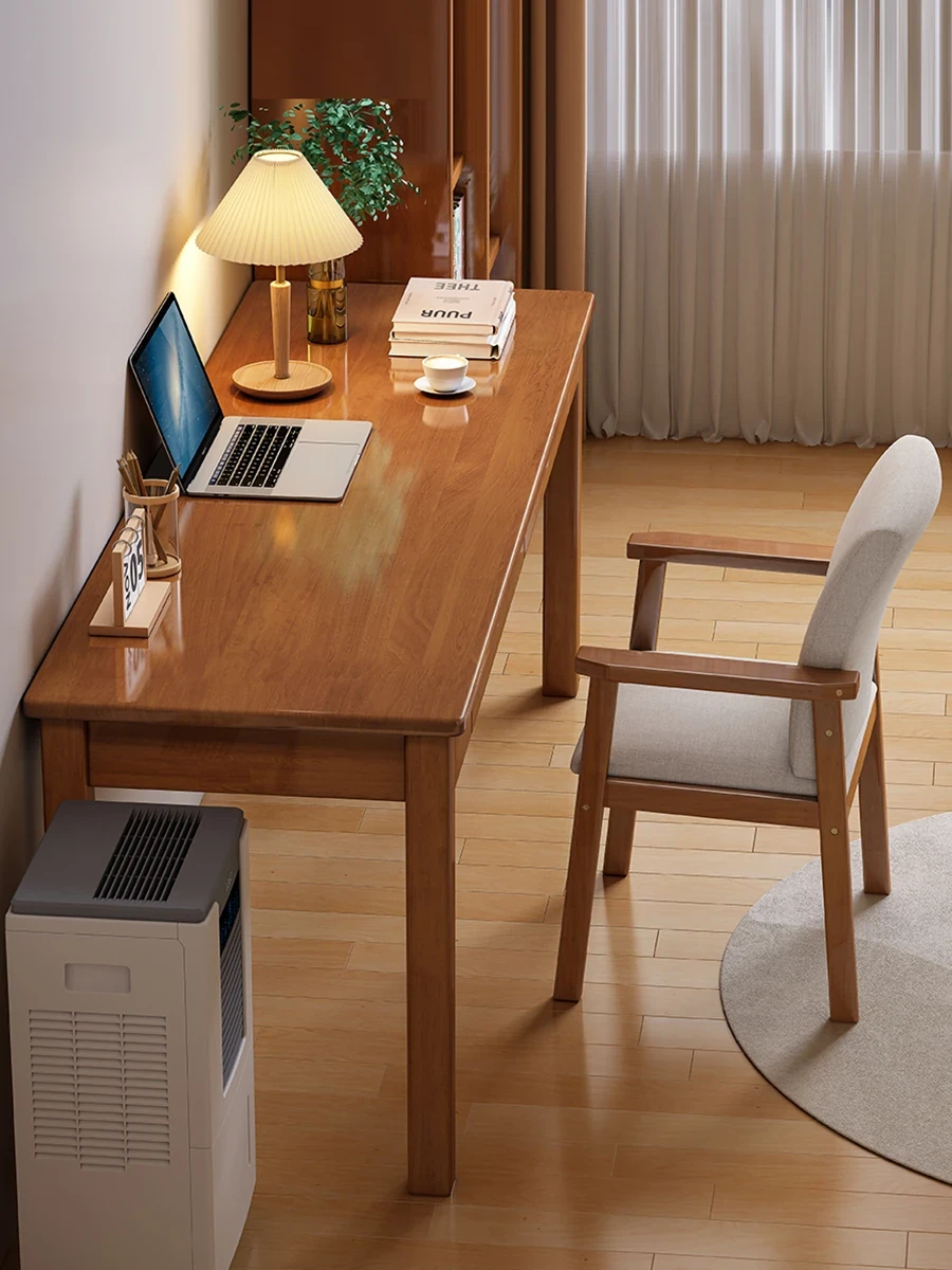 Nordic Cream-Style Solid Wood Desk – Minimalist Computer Table for Home Office, Study, and Bedroom – Perfect Writing and Learning Desk with Chair