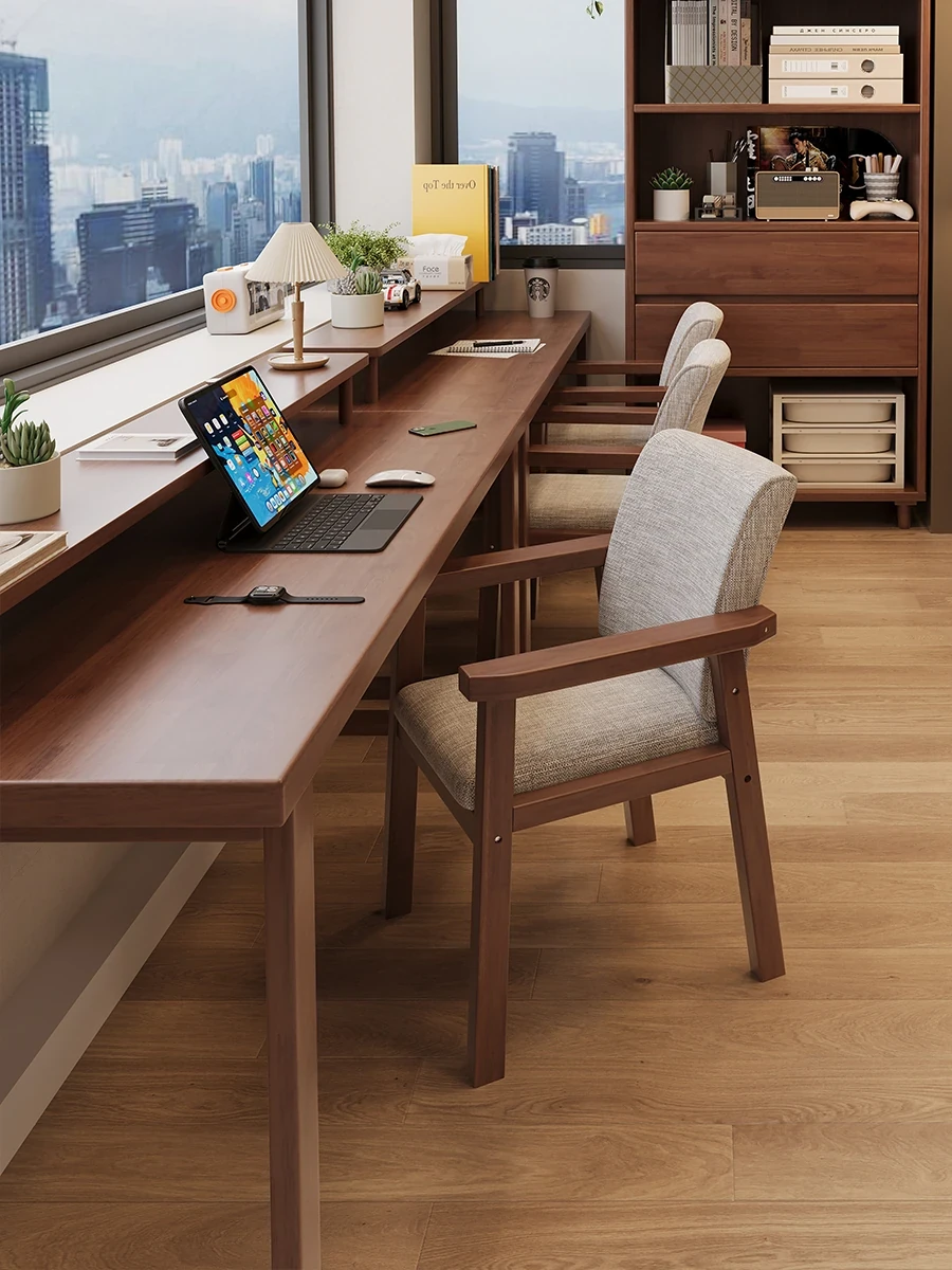 Solid Wood Long Desk - Minimalist Dual-Person Home Office Workstation, Natural Writing and Study Desk, Elegant Desktop Computer Table for Style and Functionality