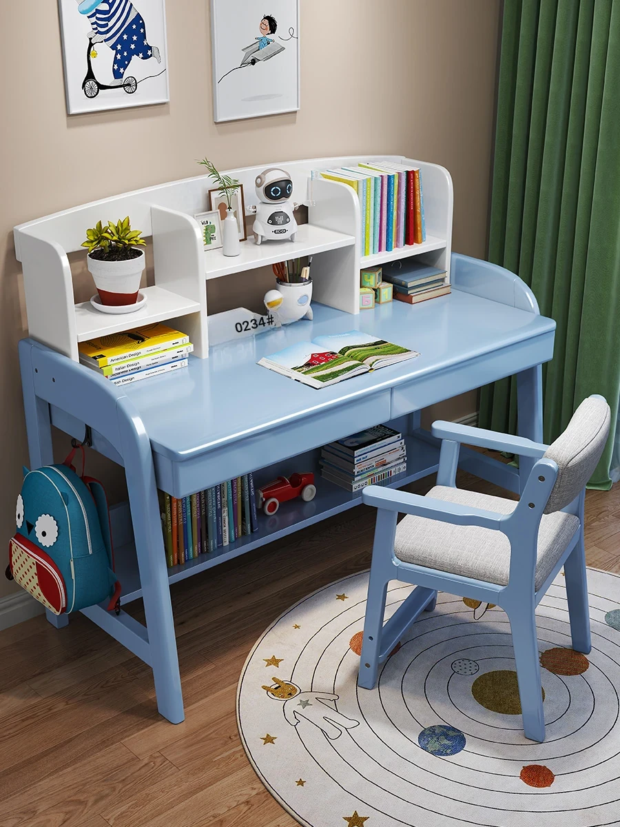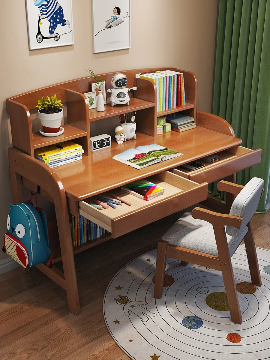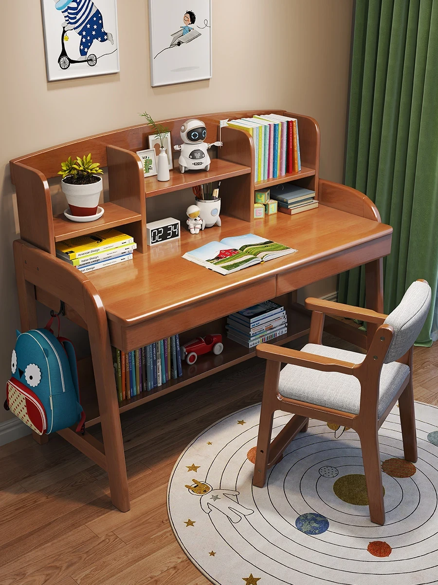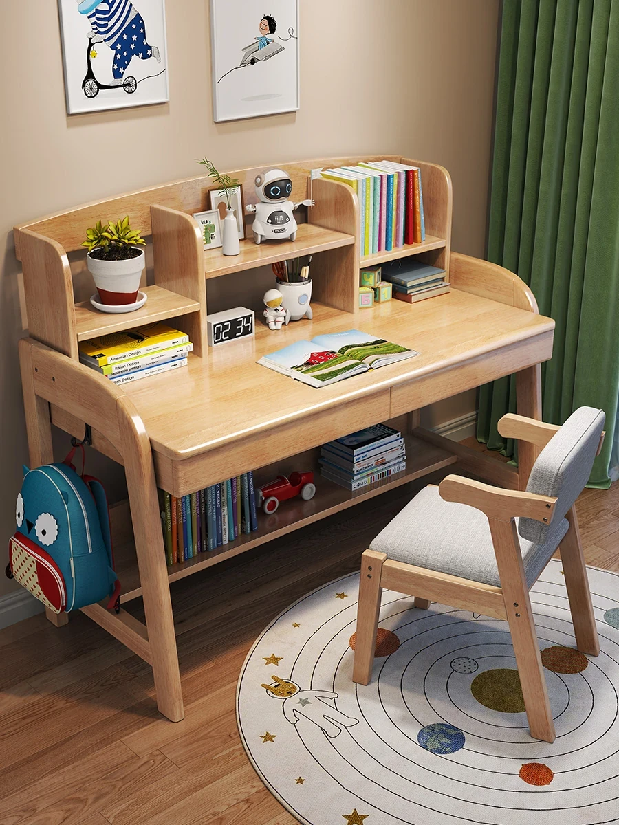 Adjustable Kids Study Desk and Chair Set - Minimalist Solid Wood Learning Table for Elementary Students, Perfect for Home Use