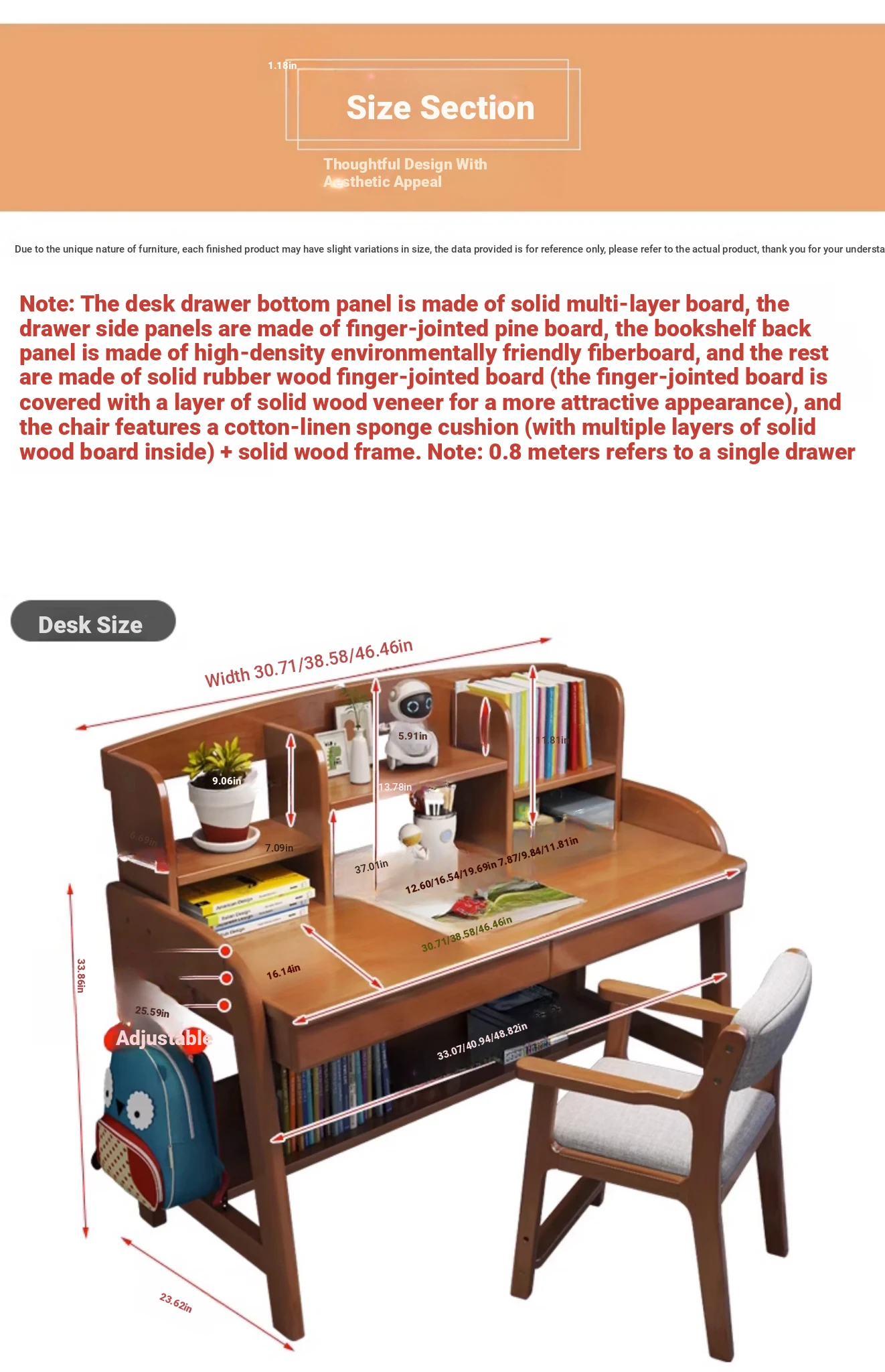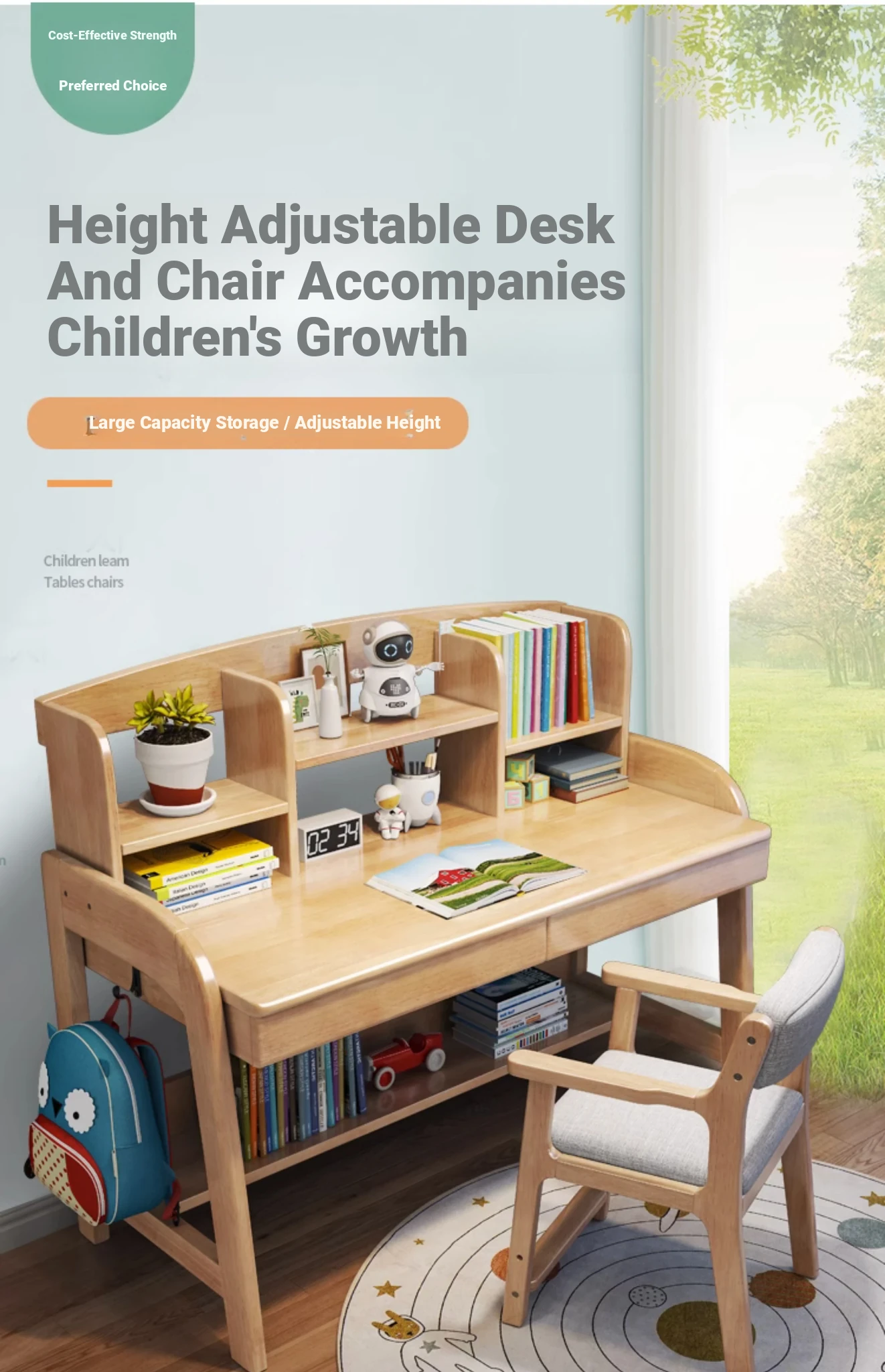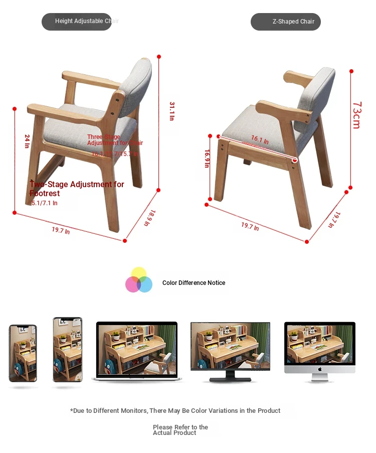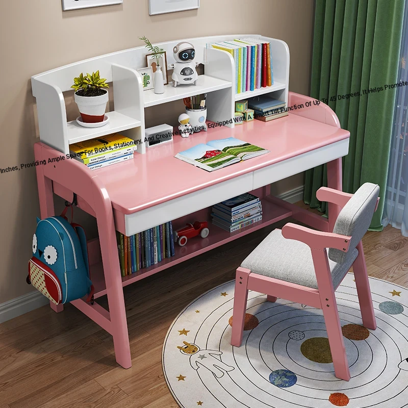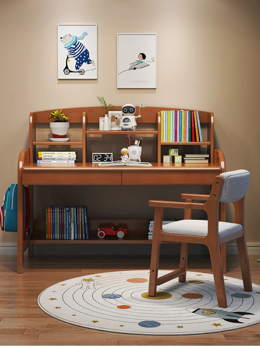 Adjustable Kids Study Desk and Chair Set - Minimalist Solid Wood Learning Table for Elementary Students, Perfect for Home Use