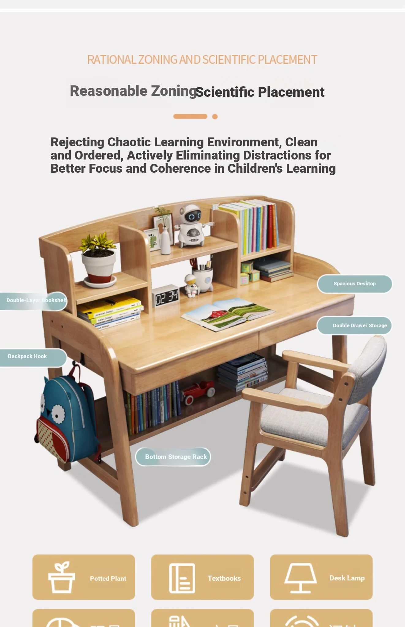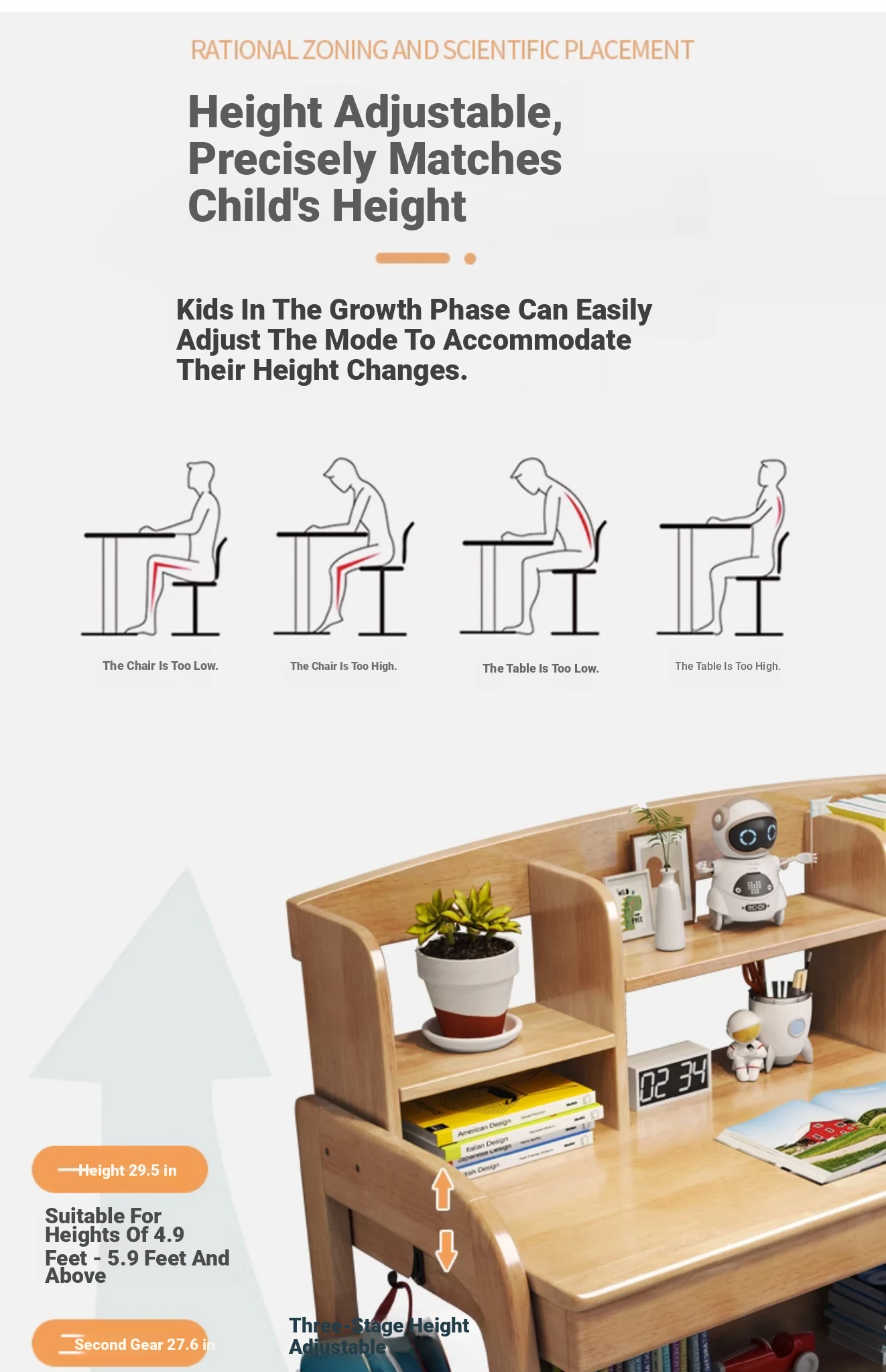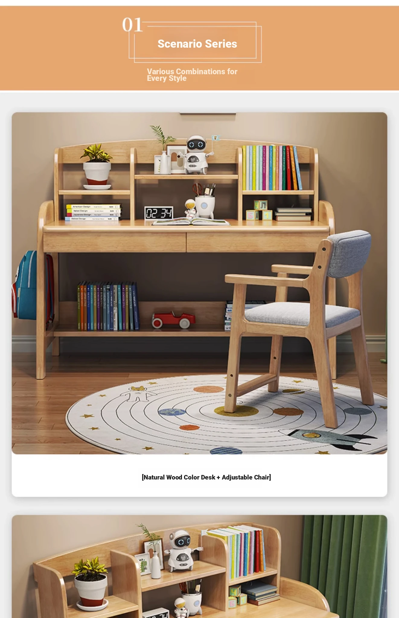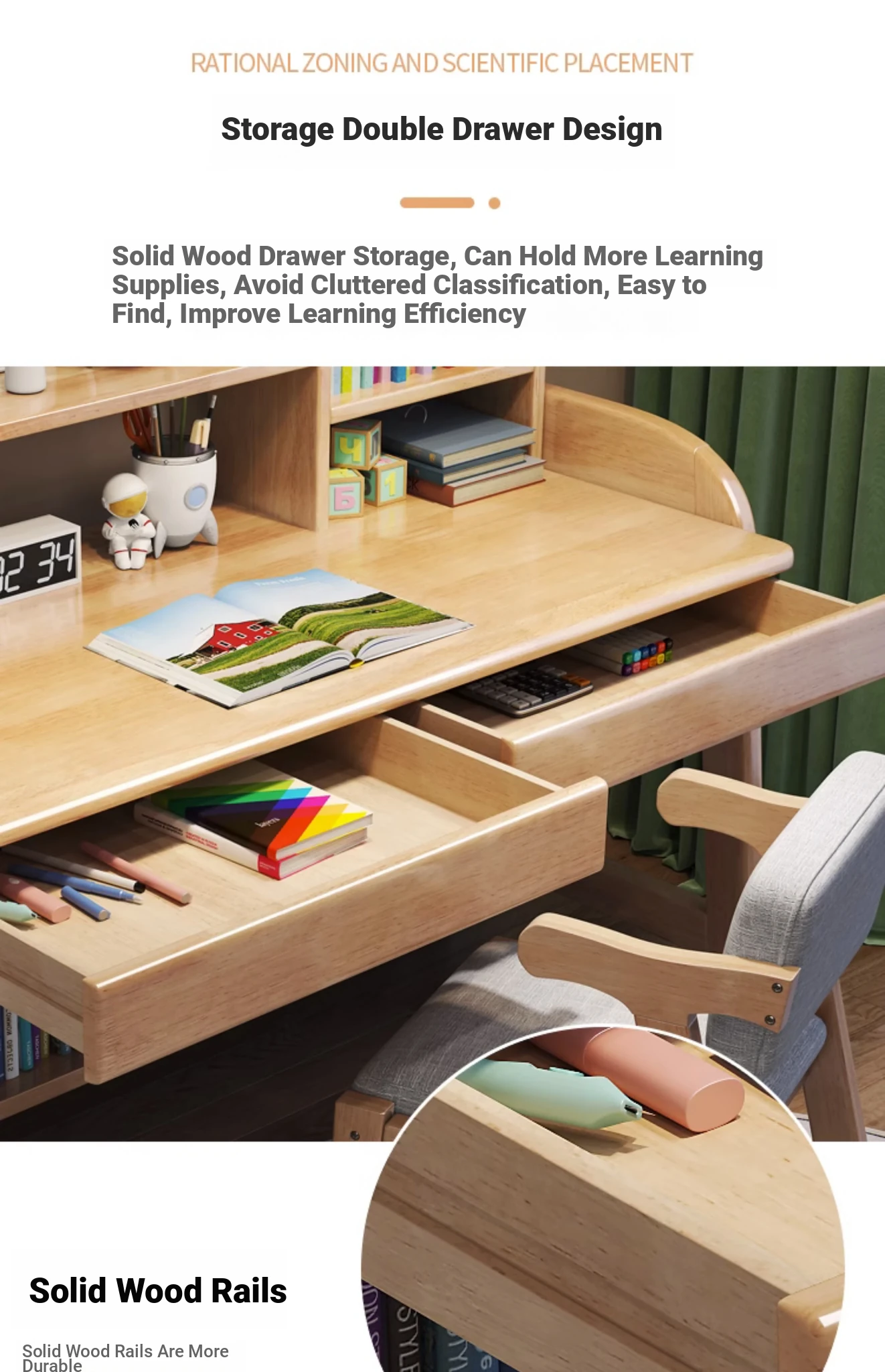 Adjustable Kids Study Desk and Chair Set - Minimalist Solid Wood Learning Table for Elementary Students, Perfect for Home Use