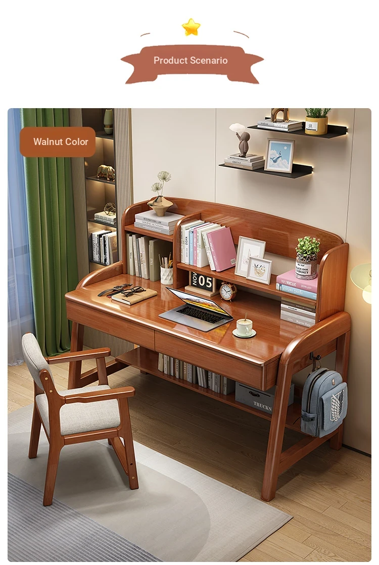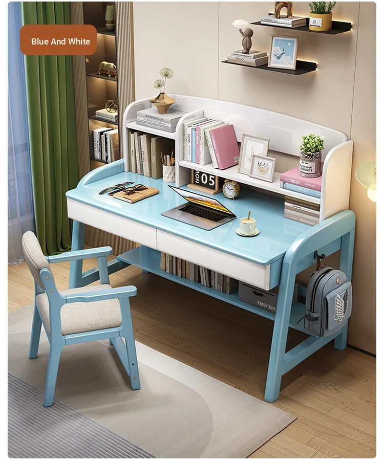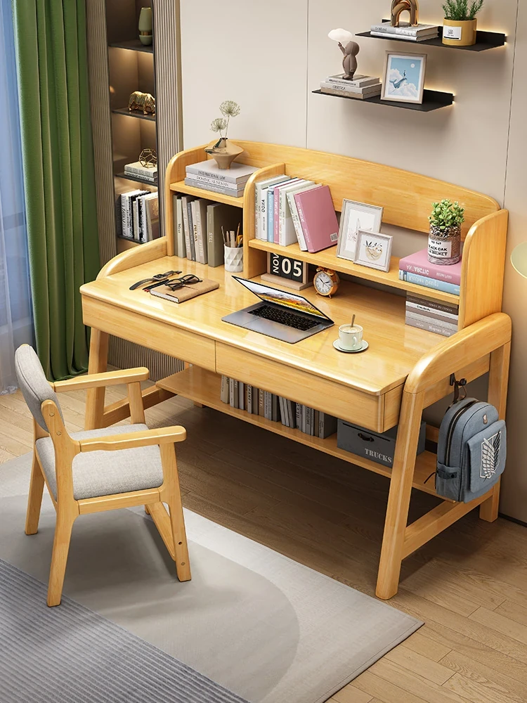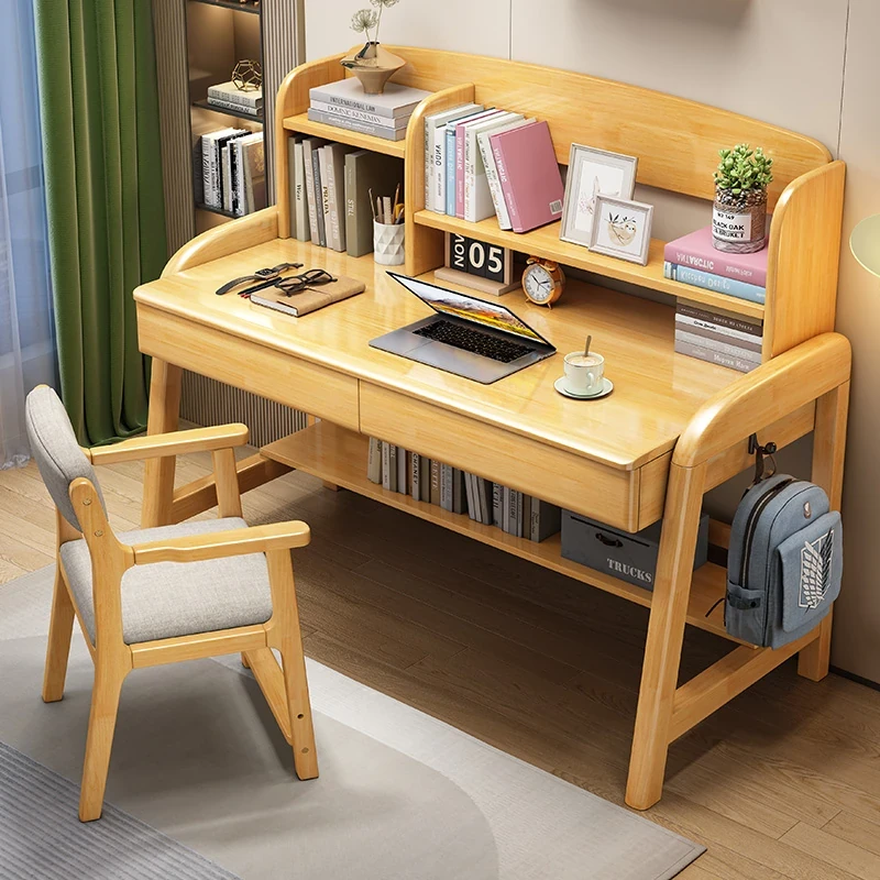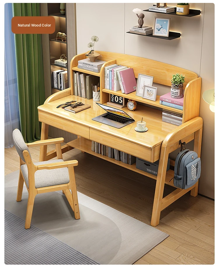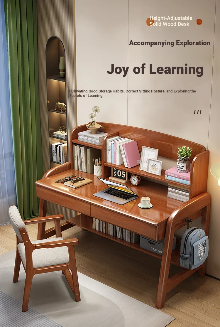 "Scandinavian Solid Wood Desk with Bookshelf – Stylish and Adjustable Study Table for Kids and Teens in Bedrooms or Home Offices – Perfect for Learning and Homework"