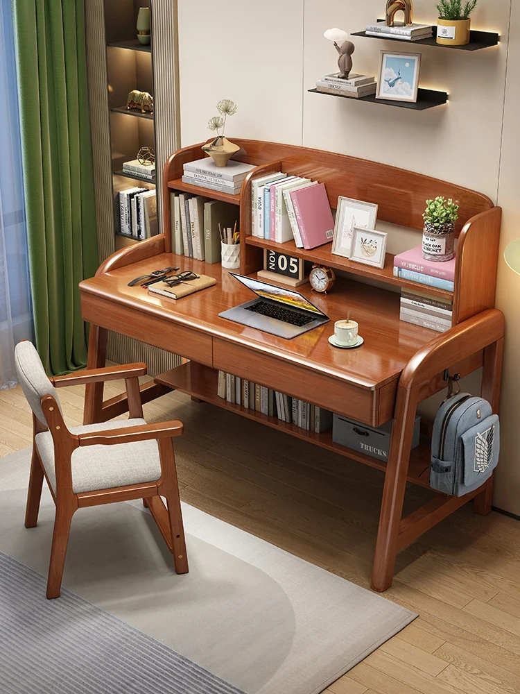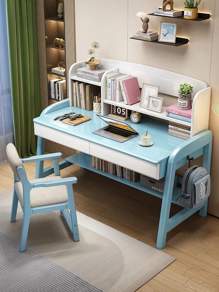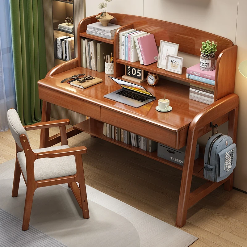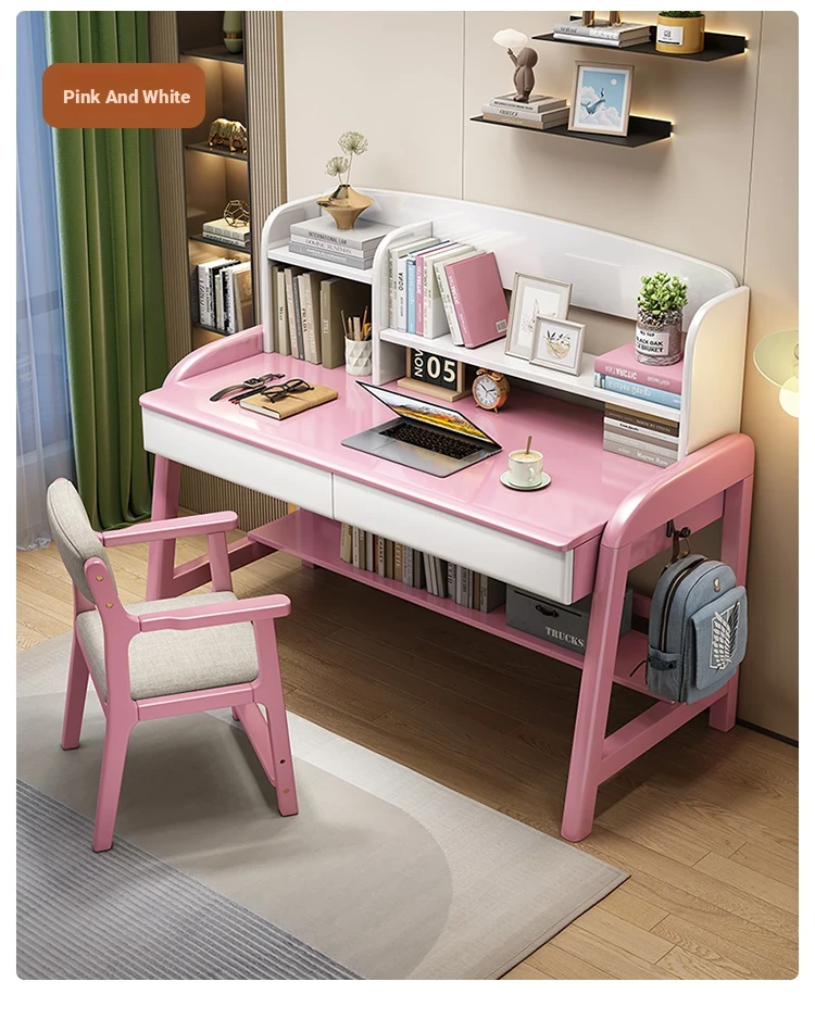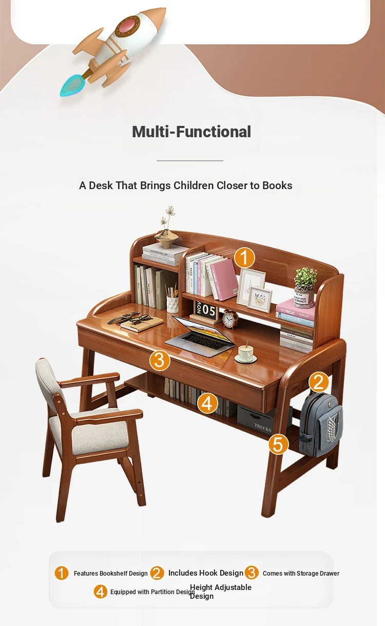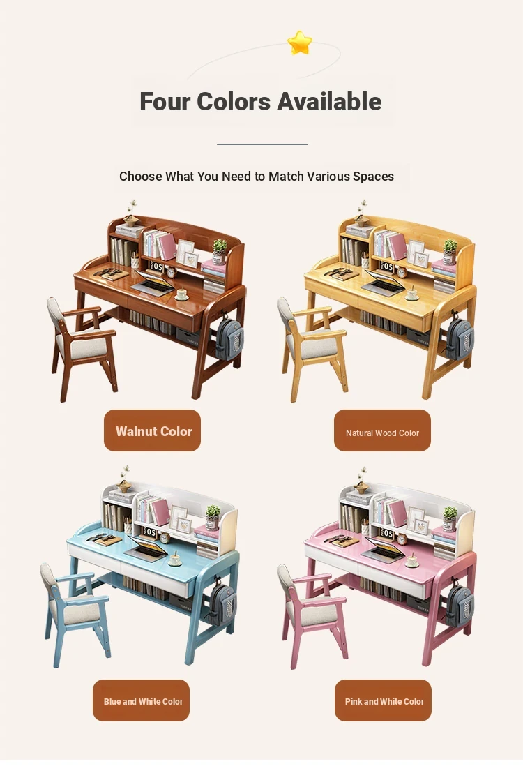 "Scandinavian Solid Wood Desk with Bookshelf – Stylish and Adjustable Study Table for Kids and Teens in Bedrooms or Home Offices – Perfect for Learning and Homework"