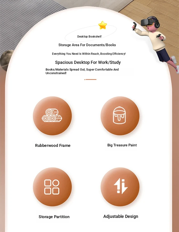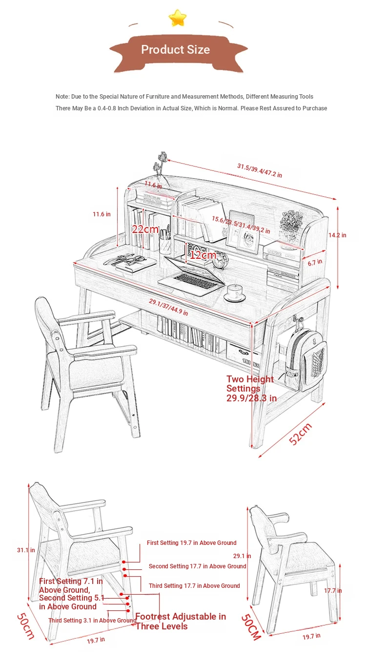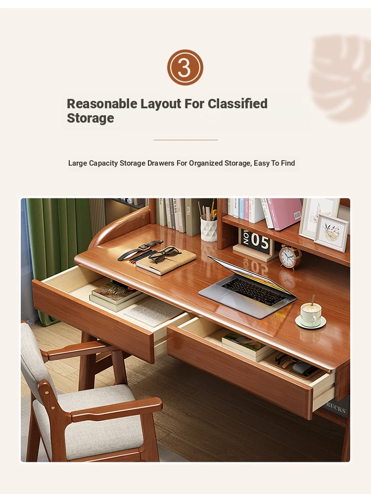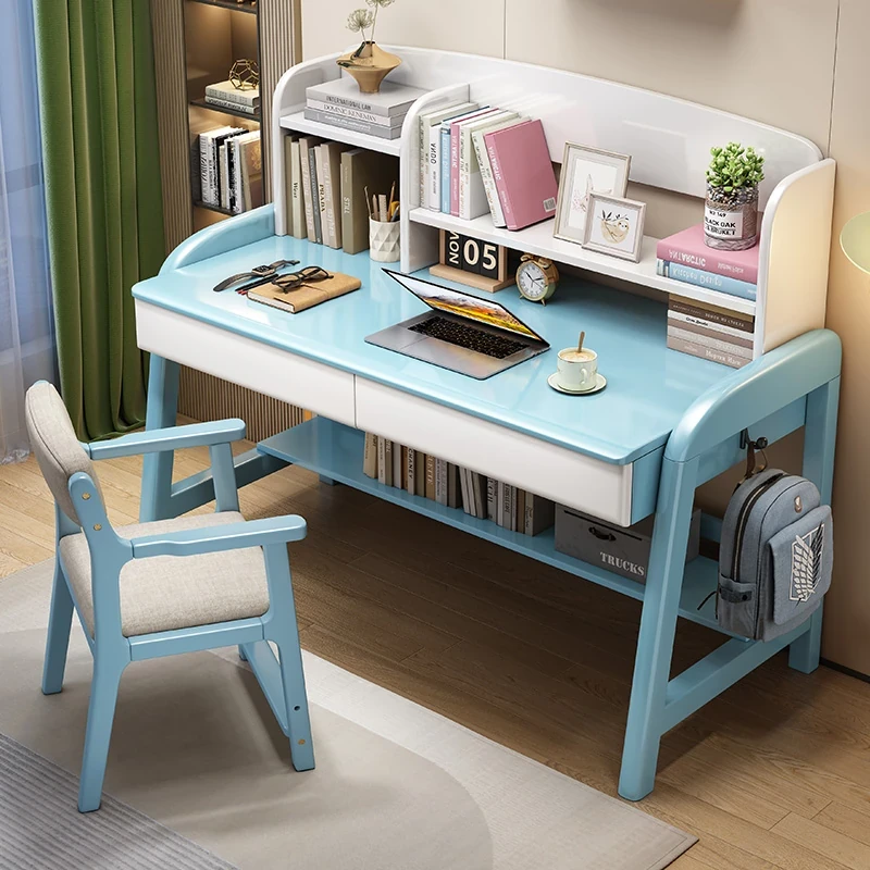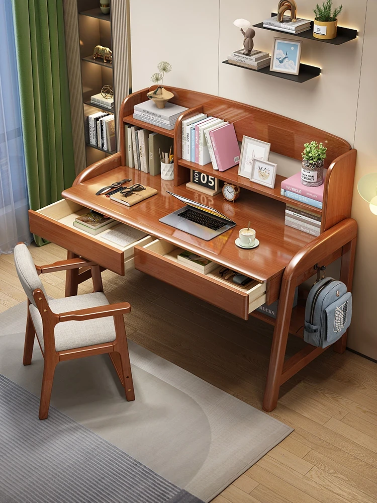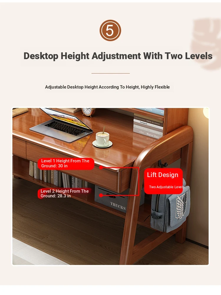 "Scandinavian Solid Wood Desk with Bookshelf – Stylish and Adjustable Study Table for Kids and Teens in Bedrooms or Home Offices – Perfect for Learning and Homework"