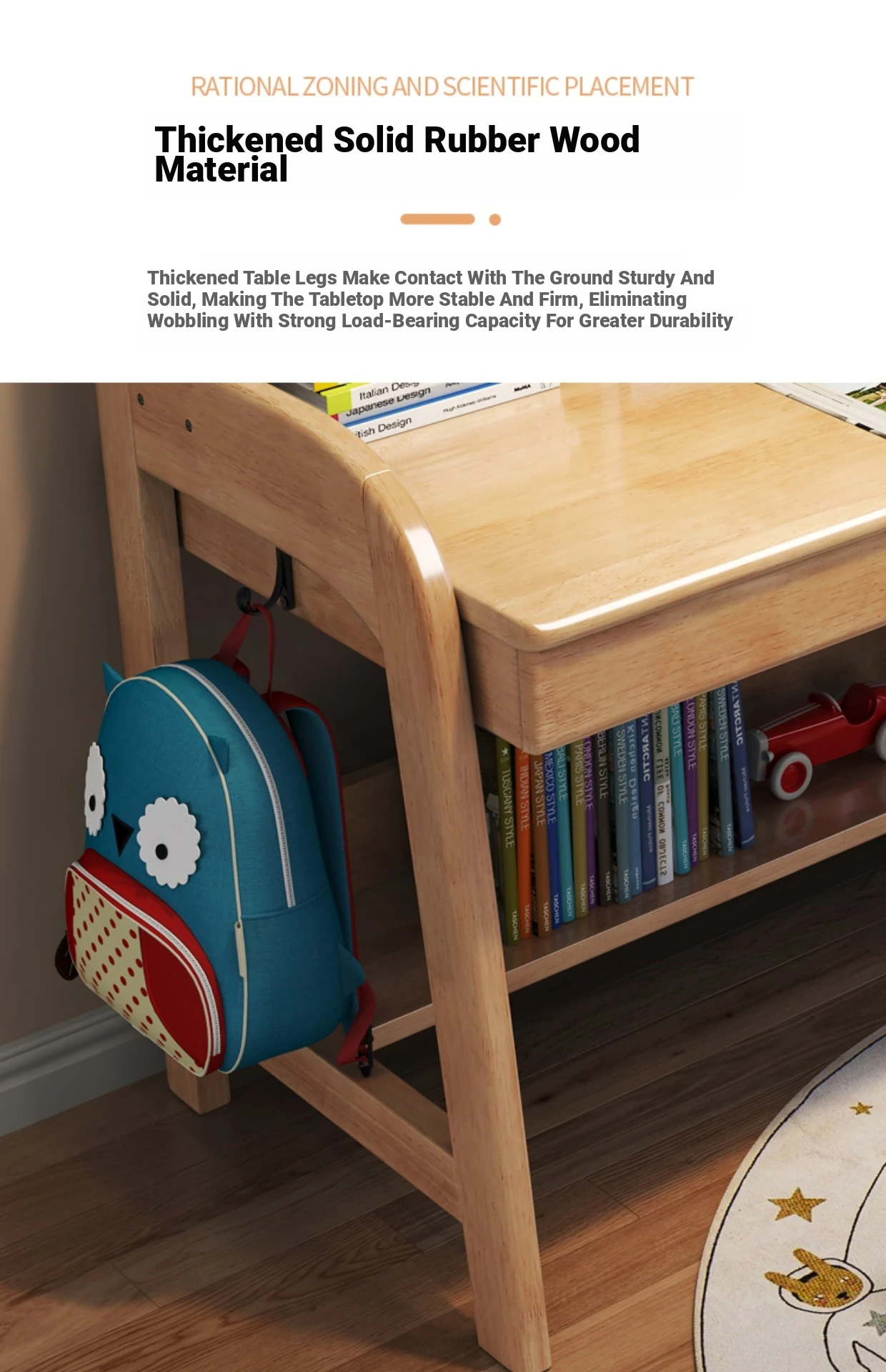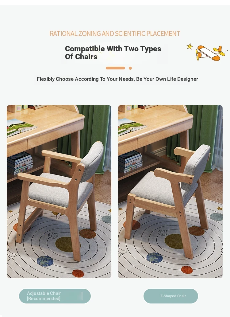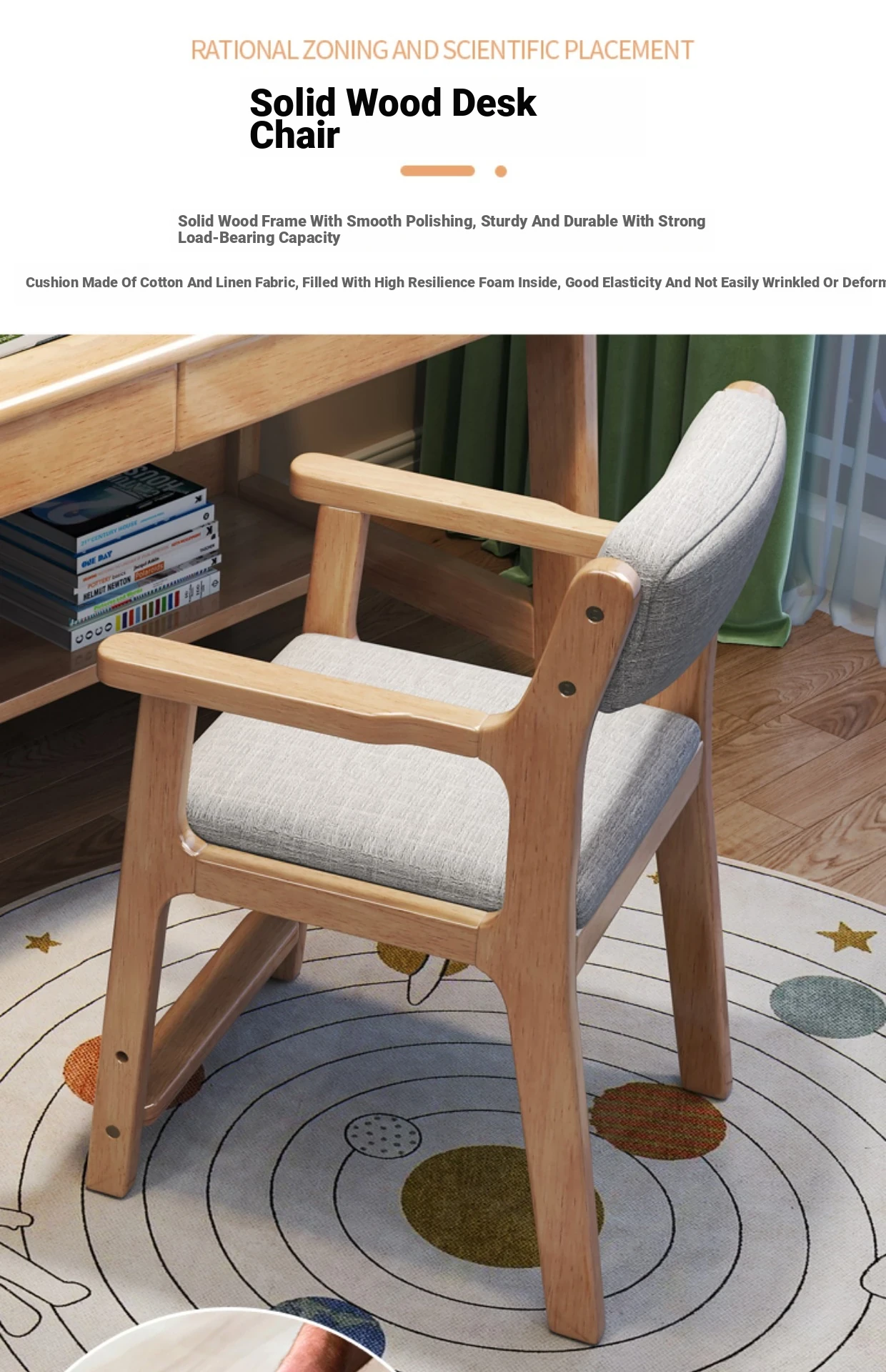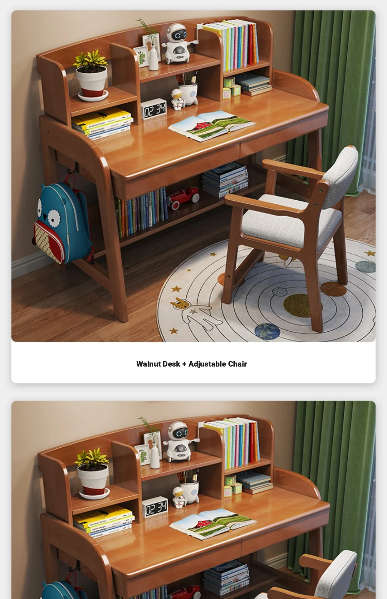 Solid Wood Children's Study Desk with Integrated Bookshelf - Adjustable Home Writing Desk Set for Middle School Students, Perfect for Bedrooms