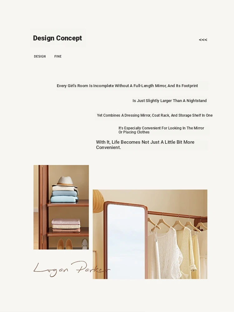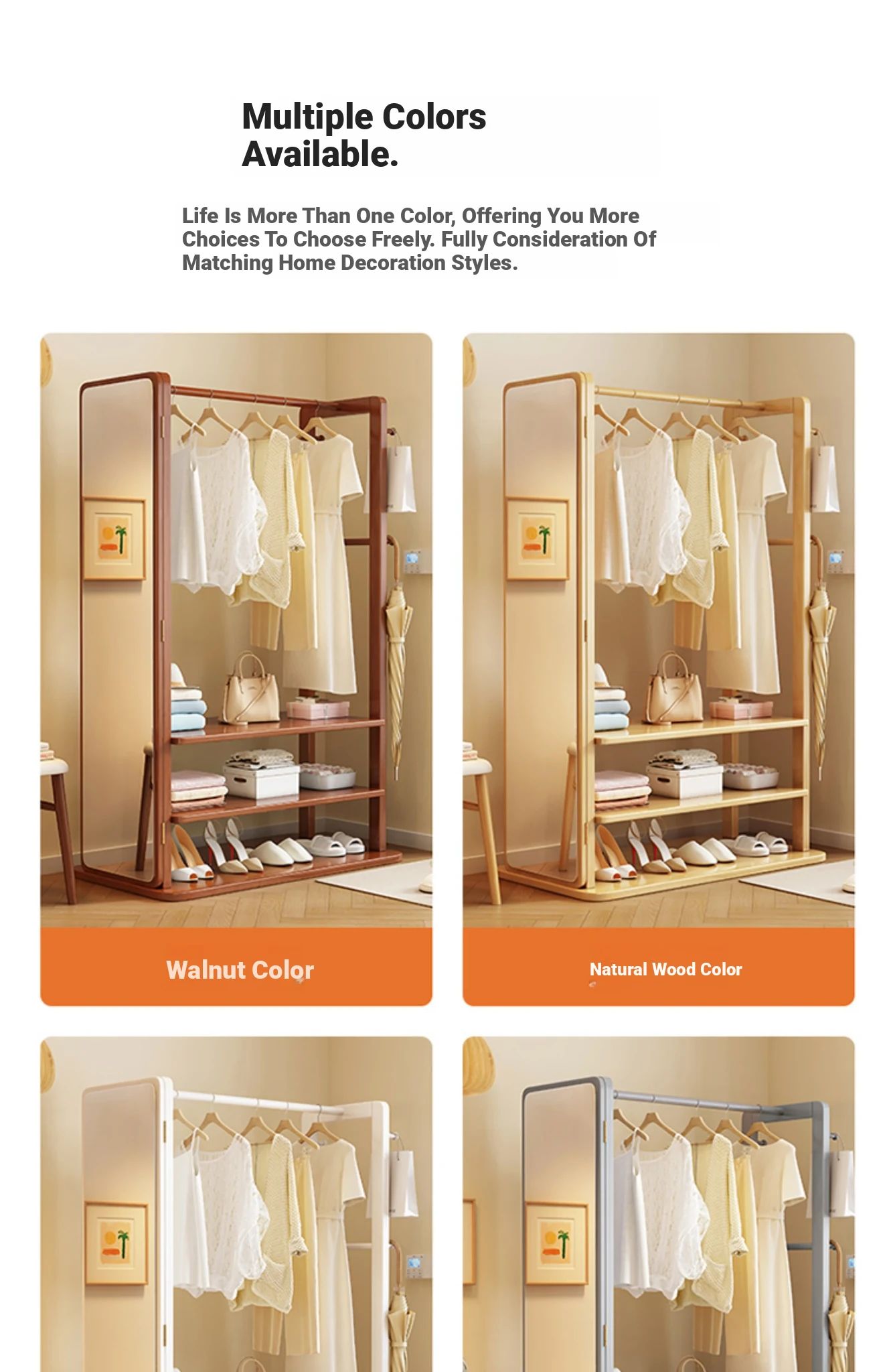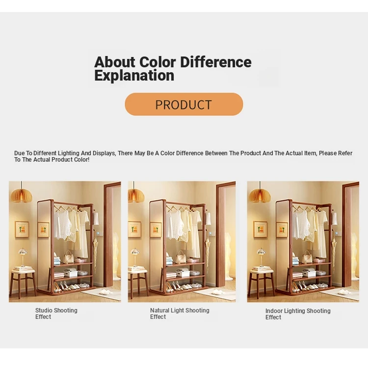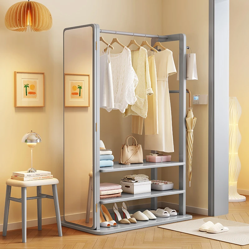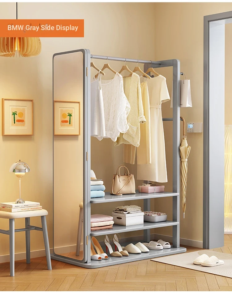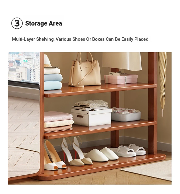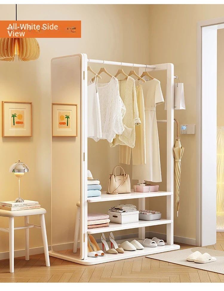 Modern Solid Wood Coat Rack with Full-Length Mirror – Minimalist Freestanding Storage Solution for Bedroom and Entryway, Perfect for Organizing Clothes and Accessories
