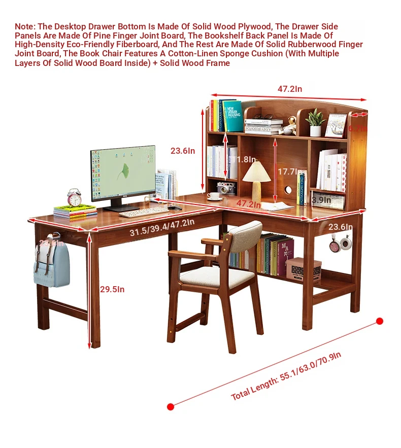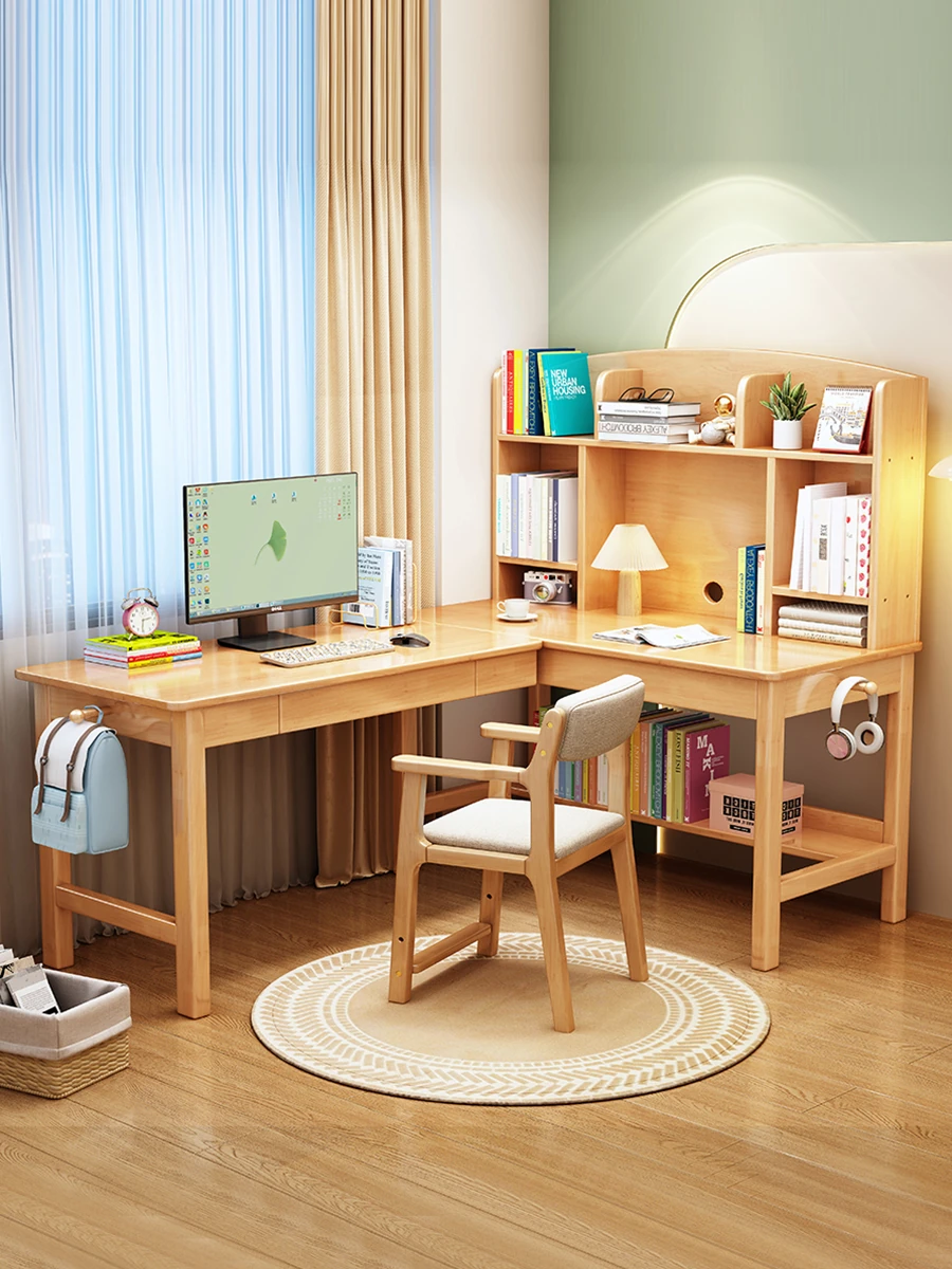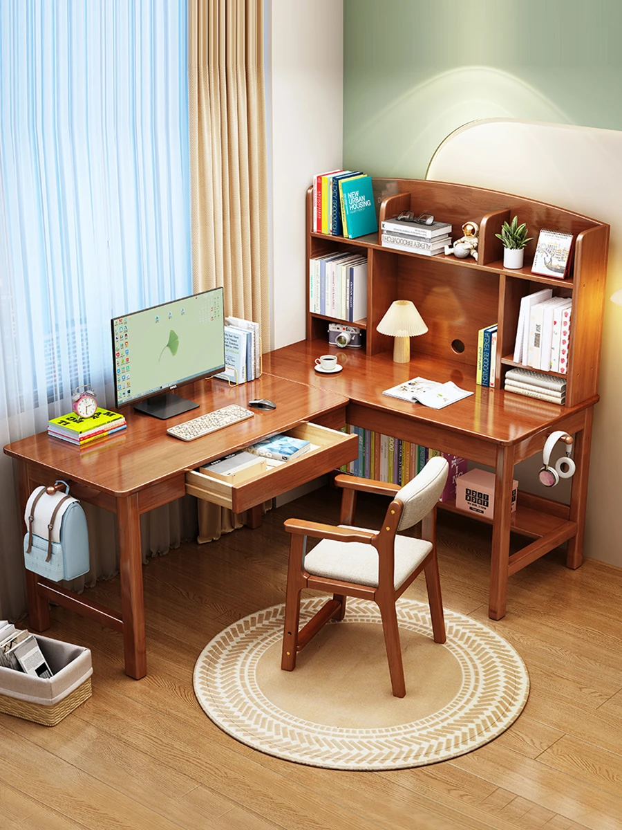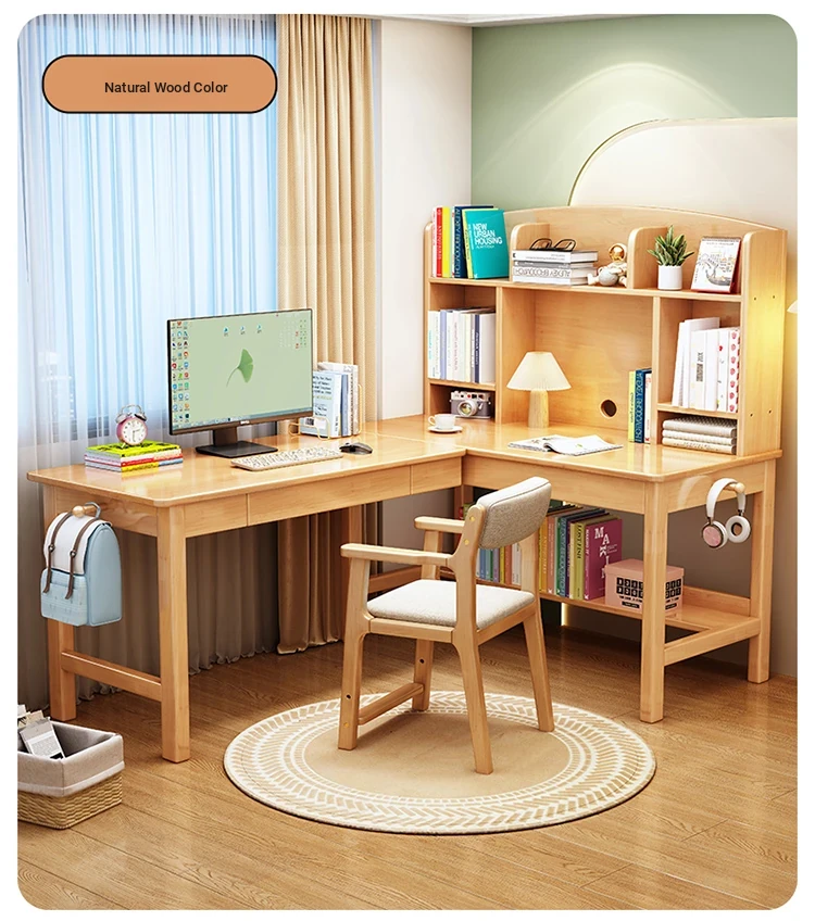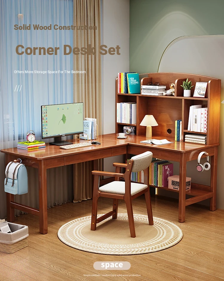 Solid Wood L-Shaped Corner Desk - Stylish Home & Study Desk for Students and Adults, Perfect for Writing and Computer Work, Includes Chair - Ideal for Efficient Workspace Setup
