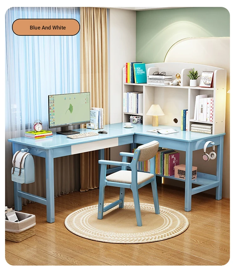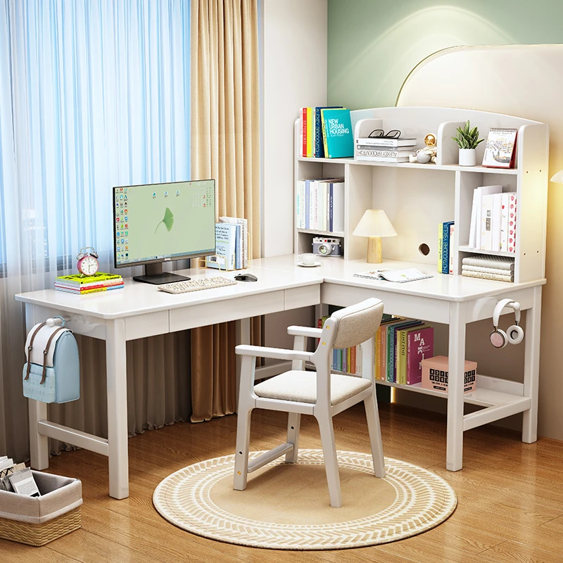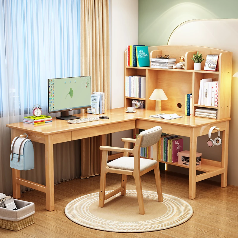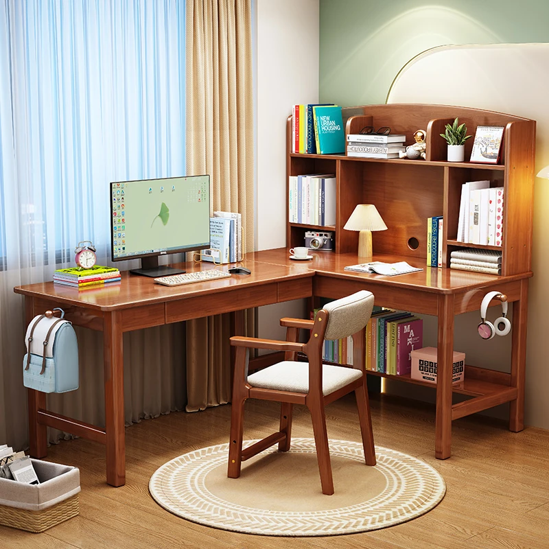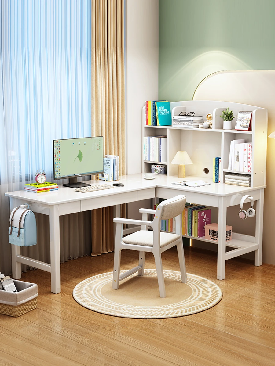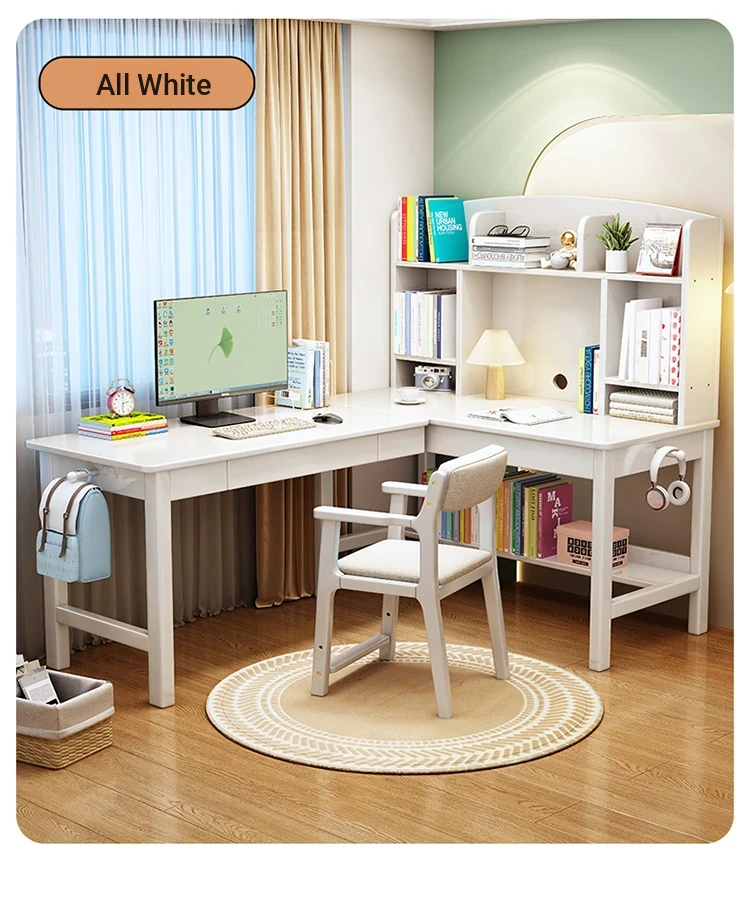 Solid Wood L-Shaped Corner Desk - Stylish Home & Study Desk for Students and Adults, Perfect for Writing and Computer Work, Includes Chair - Ideal for Efficient Workspace Setup
