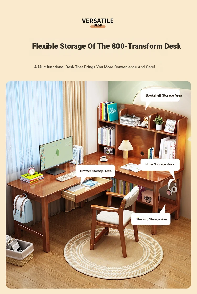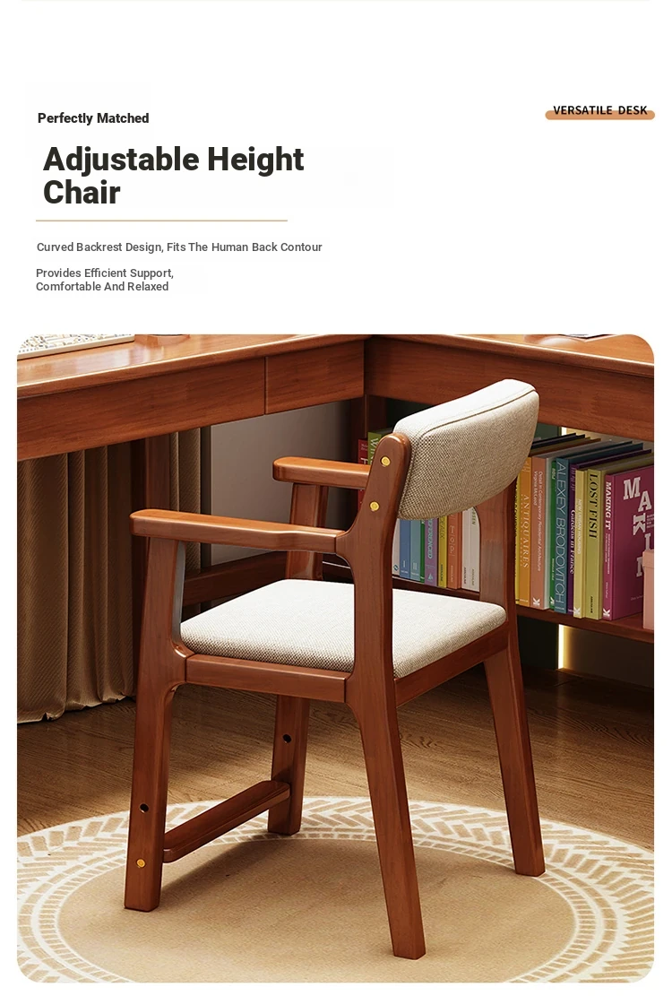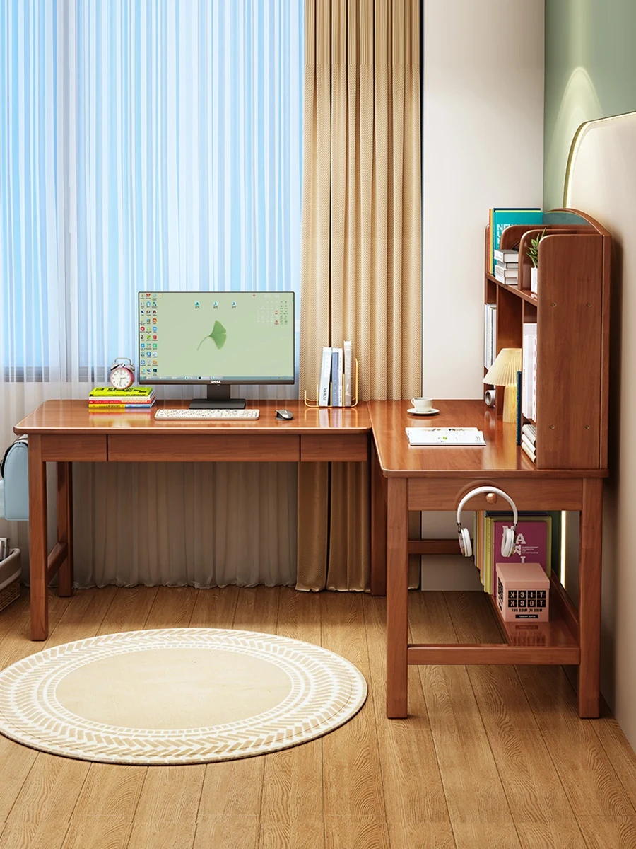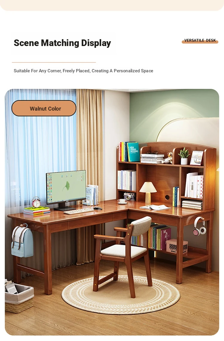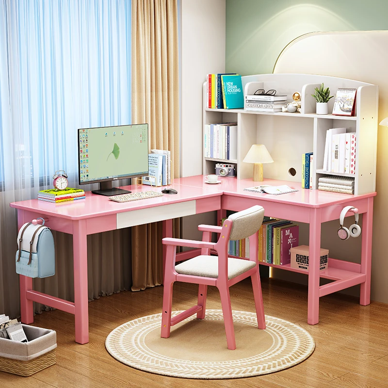Solid Wood L-Shaped Corner Desk - Stylish Home & Study Desk for Students and Adults, Perfect for Writing and Computer Work, Includes Chair - Ideal for Efficient Workspace Setup