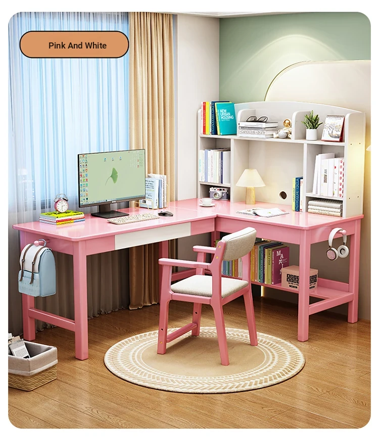 YAYJ619# pink and white single table(Bookshelf can be installed left and right)